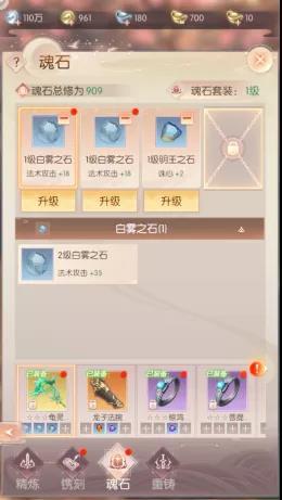我们可根据自己实际情况优先获取魂石套装属性加成,提升修为。