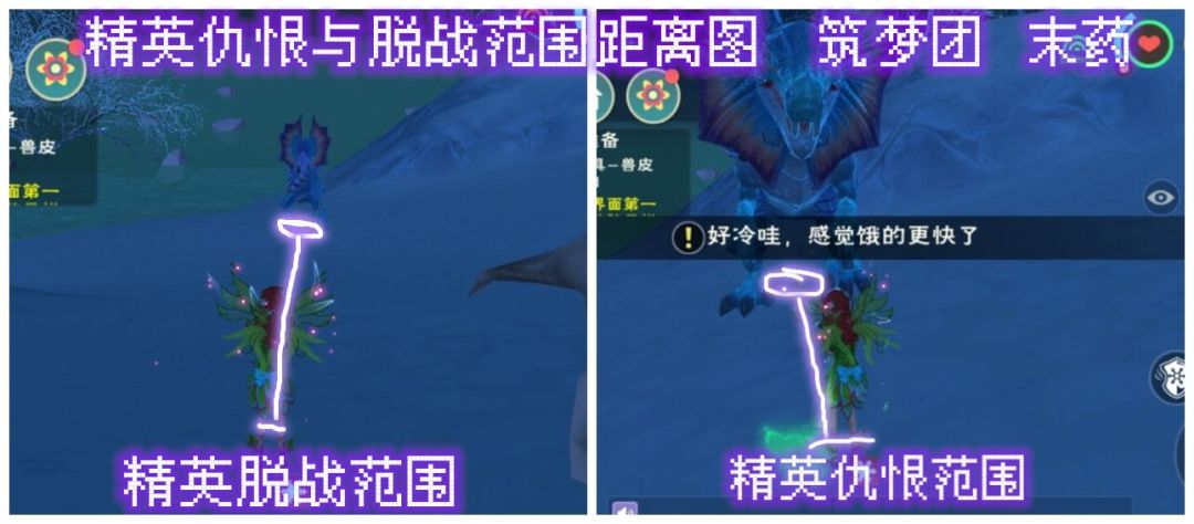 下面是对于不同生物【仇恨范围】与下文的【脱战范围】的总结。