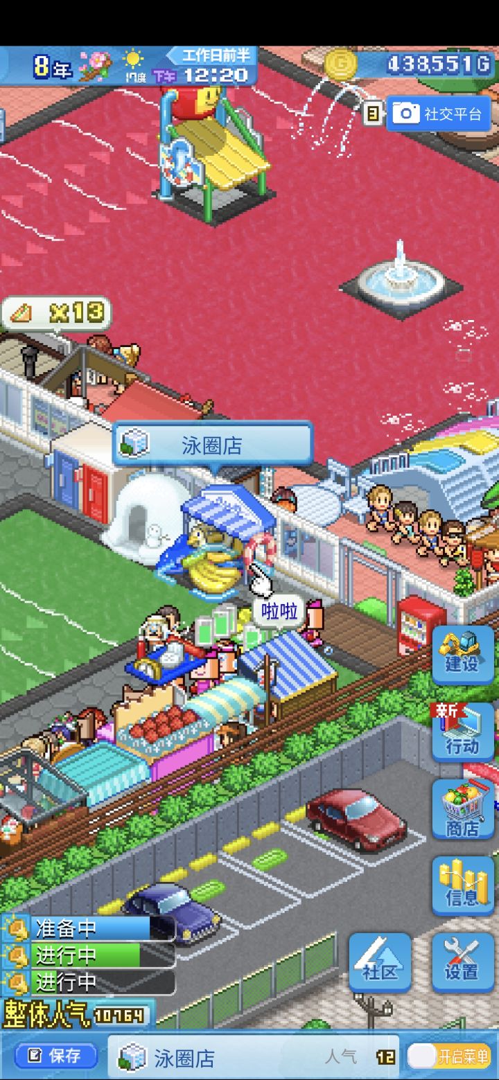 前期想让客人下池子,完成任务的可以这样试一下,室外的话就只开一个门,但是注意!!!不要跟室内的打到一起了。食物也可以开一条路这样概率会变大😅