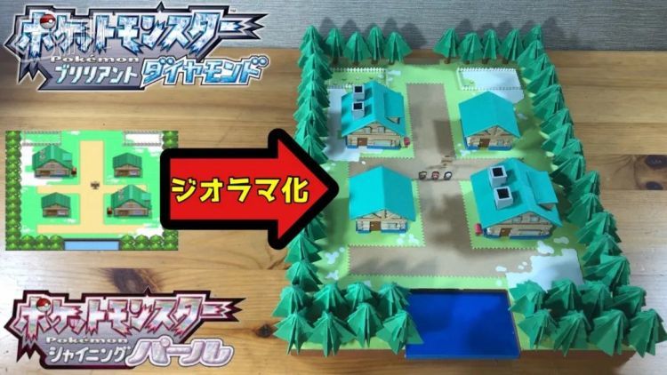 日本手艺人用纸模还原了《宝可梦 珍珠钻石》中的双叶镇