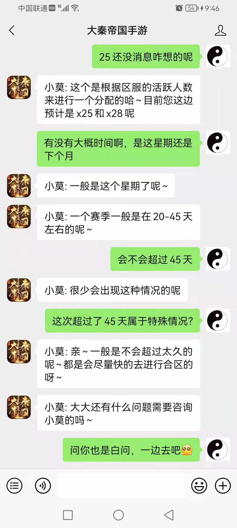 无意之中突然看到盟里的兄弟发给我一张X25区的兄弟和客服聊天截图,这X25和X28中间隔着X26和X27两个区,一个已经结算等了很多天了,我们X28天下大势还有3天才可以结算,你们都给安排的明明白白的呀,大厅匹配都是根据战盟实力随机匹配,现在看来不是这样,你们可以提前预安排,10个月以前的彗心事件是你们研发人员参与游戏坑害玩家,现在连我们的随机匹配,你们都来预安排,你们把玩家当什么,请欣欣官方给与明确的解释!!!