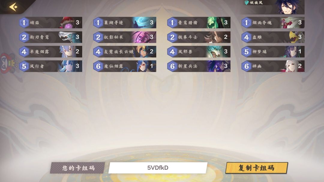 妖族风节奏比较慢 需要打出一定数量的直伤妖族神兽最后靠禅幽斩杀 所以带一定数量的2费解牌保证前中期的生存 带梦璃稳定过6费卡