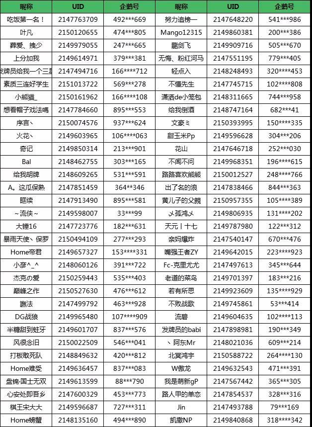 【企鹅区报名成功选手名单】