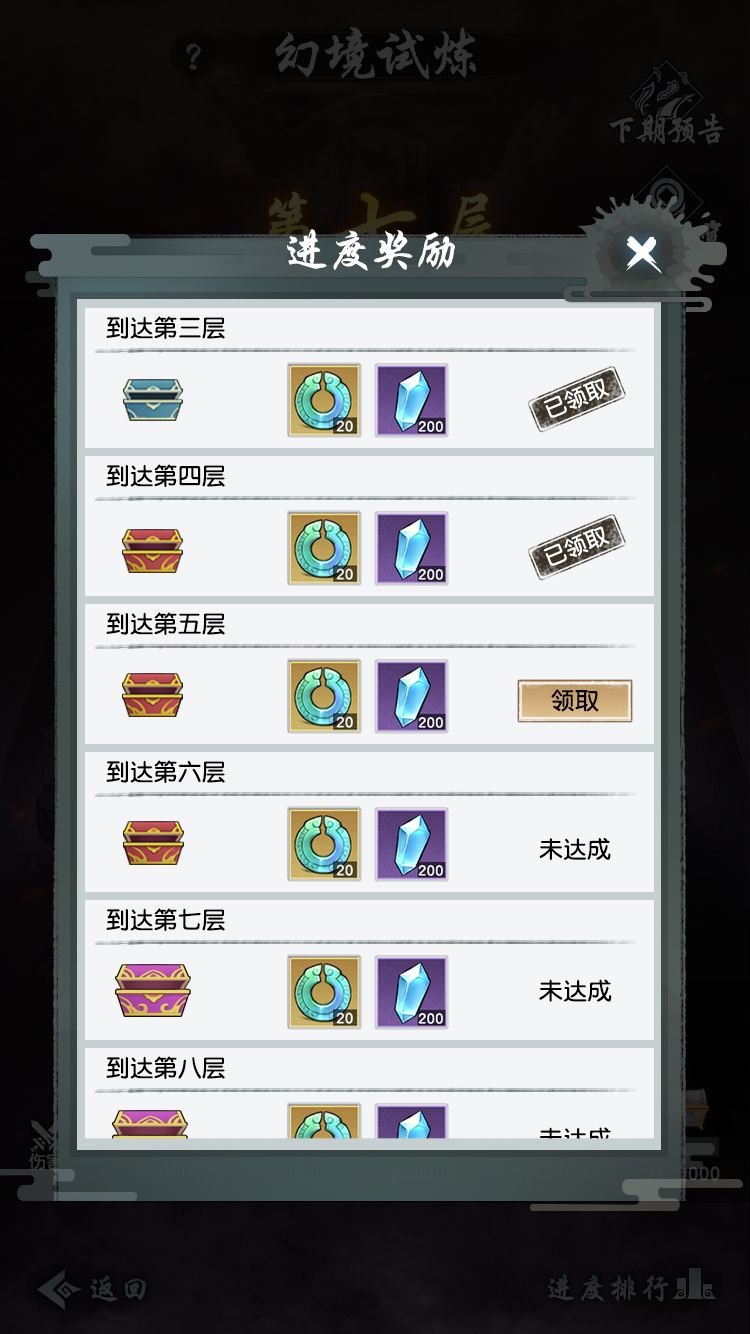 推关过程中,随着层数的递进,道友可以领取阶段奖励以及排名奖励,其中排名奖励将在游戏结束后通过系统邮件统一发放。同时,自动推关的功能也将在通过指定层数后开启,希望这能够帮助各位道友冲锋陷阵、力克强敌。