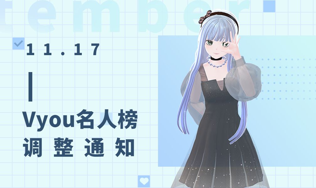 在此期间,Vyou名人榜将暂时停止更新,新版名人榜场景的上线时间请等待官方的后续通知。