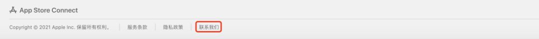 1. 开发者们可点击App Store Connect后台下方的「联系我们」进入。