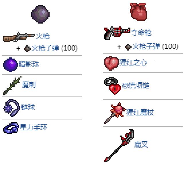暗影珠/猩红之心,与被击碎的本体同名的照明物,可以装备在照明物槽位上为玩家提供局部照明。是类似宠物的道具。