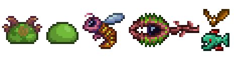 僵尸鱼人与游荡眼球鱼只会在血月期间内被钓上,被击败后有概率掉落血雨弓,吸血青蛙法杖,但因为咱是战士所以只能遗憾卖钱。