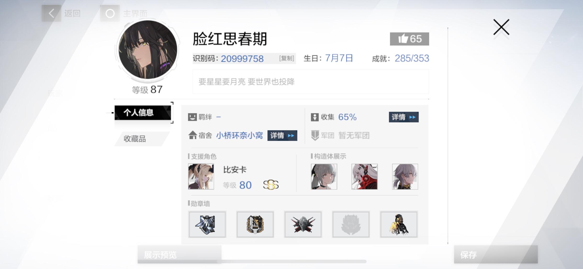 等七月的泳装 白毛的终末之旅真的是我觉得最帅的了 感觉好朋克外套贼嘻哈 我总感觉深红除了机车手也许还是个rapper哈哈哈哈 现在就是没有仰光这个角色了 今天还改了一下昵称(这个游戏我太爱了)