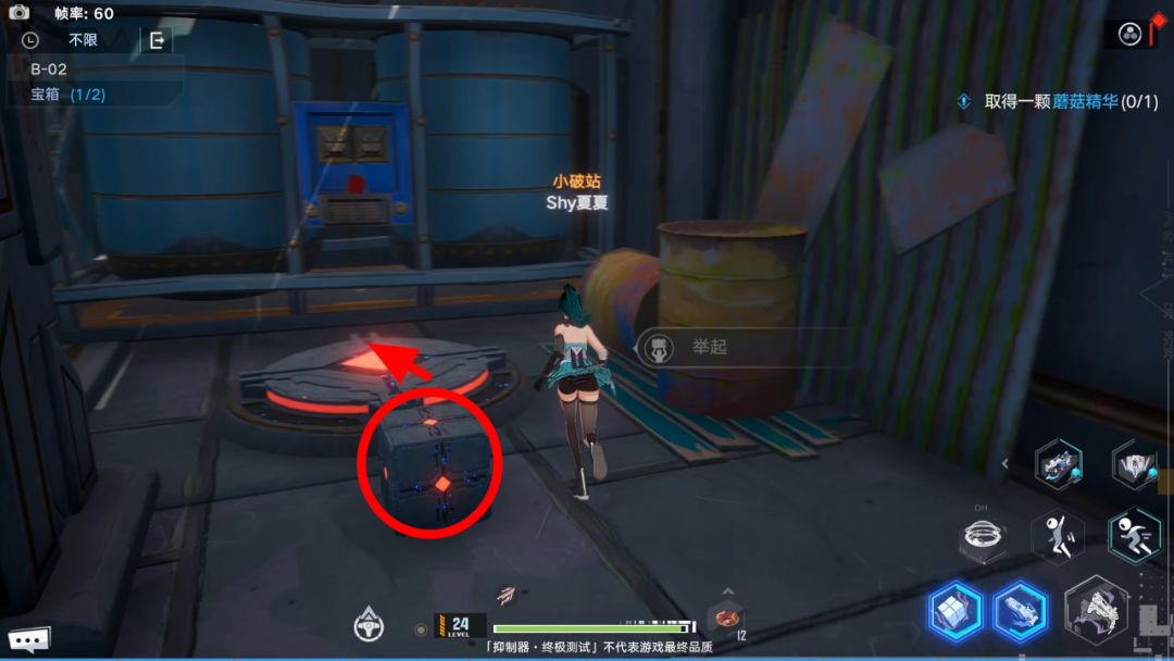 宝箱一:利用手炮跳上高台后,旁边就能获得第一个宝箱。