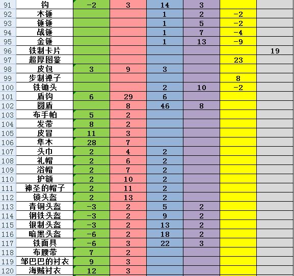 吐了,这游戏到处都是坑,还啥都没有注释醉醉。整理了宠物食物,工具和装备的色素添加值表,个别包里没有就没填,有需要的萌新拿去。