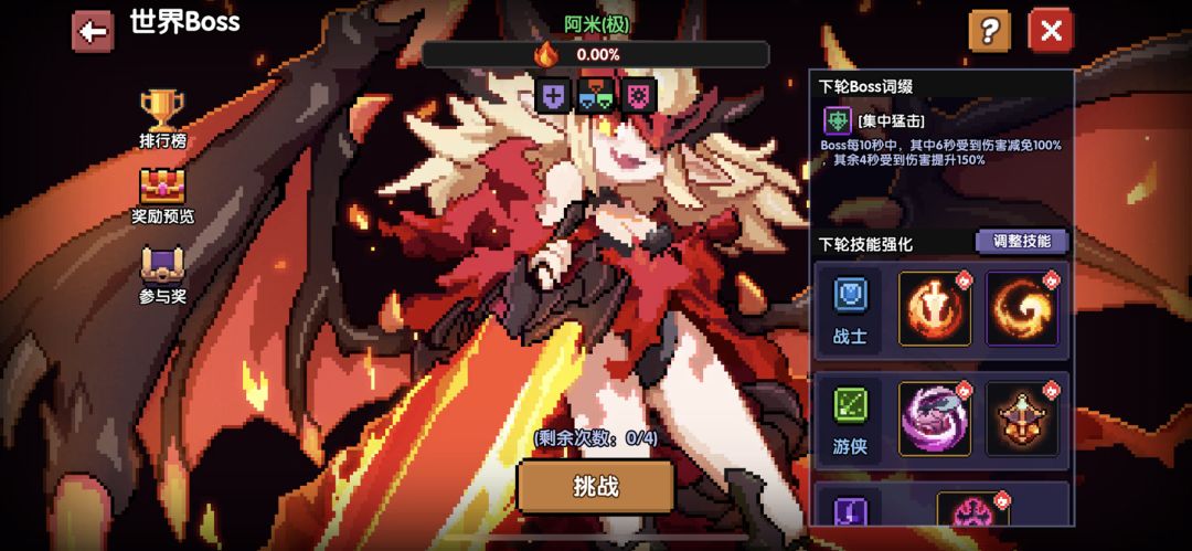 阿米极力不建议打二阶段,因为二阶段阿米会有无敌和全屏秒杀,并且进入愤怒状态后阿米的攻击会附加灼伤 效果,灼伤其中一个效果非常致命,身上有灼伤buff的玩家,攻击强度会被减少10%,最多叠加5层。所以能不打二阶段就不打二阶段。 一阶段的阿米也会飞天,但不是无敌,这个要注意,一阶段的飞天不是无敌,很多玩家在打阿米的时候都认为阿米飞天就是无敌,要细心,阿米的技能一开始会释放2波弹幕,这时候只要玩家走位就能躲了,随后阿米会飞天追踪玩家进行落地杀,这个就需要点移速躲一下了,范围还是比单人打的时候大。