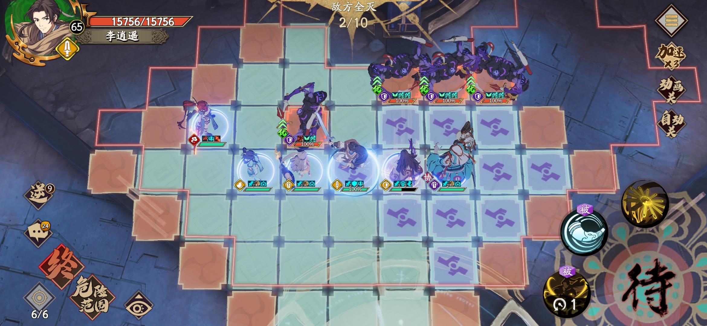 第三回合,还是依次逍遥,艾艾的输出顺序。图是运气好,没错没献祭,正常情况这里只剩逍遥和艾艾,封妈了。