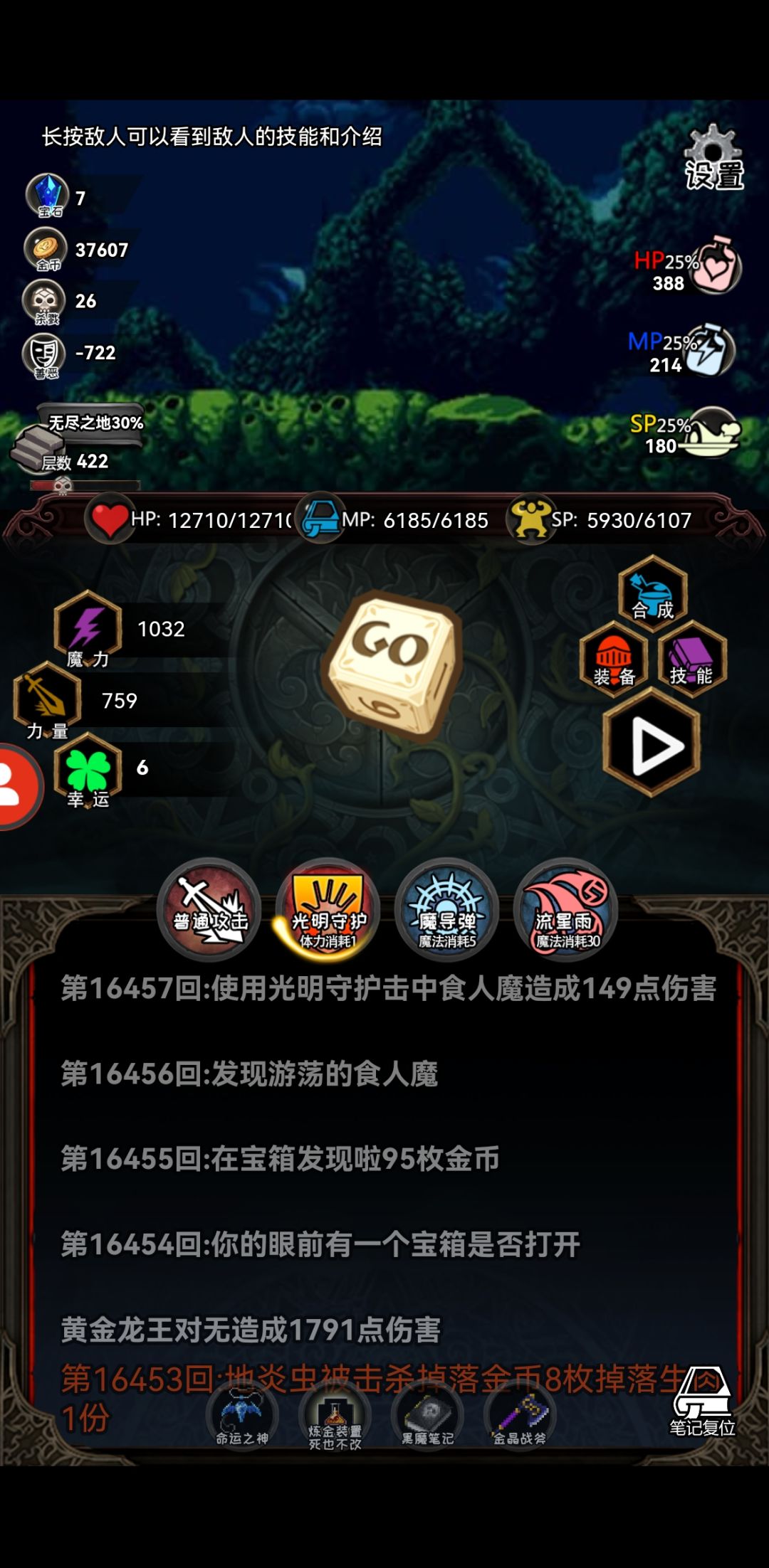 炼金后期也太无敌了吧。但我现在层数高了,就发现装备刷不出来(呜呜呜,我手贱把钥匙买了,现在开宝箱坐牢),打厄运之神的神殿也刷不出,厄运套刷出来了,但因为有诅咒不想穿。现在就无脑刷属性,后期随便boss一刀秒都可以秒我,吓死了。