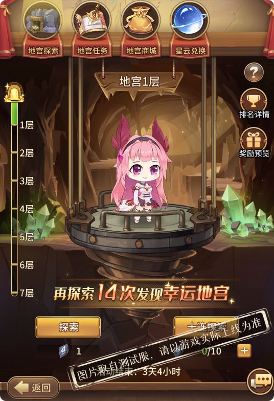 ◆ 活动期间消耗【魔力石】进行探索即可获得奖励,【魔力石】可通过日常/周常活跃奖励、地宫任务、地宫商城等途径获取;
