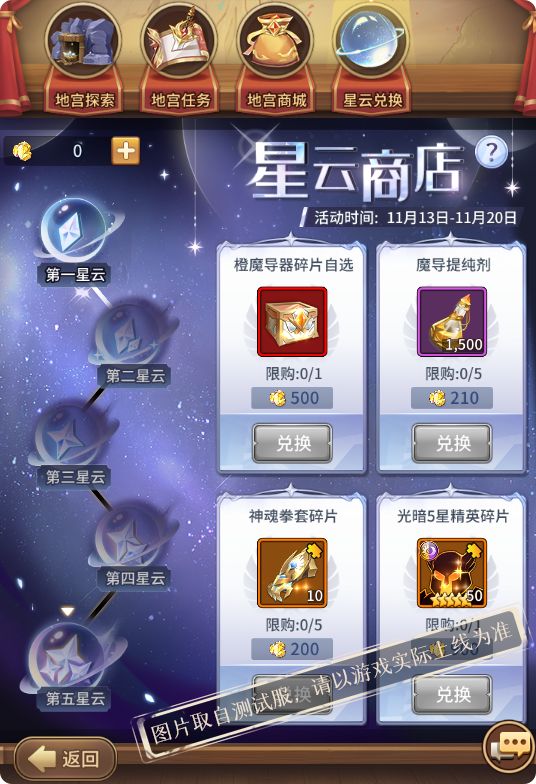 ◆ 探索获得的【黄碧玺】可前往【星云商店】兑换道具;