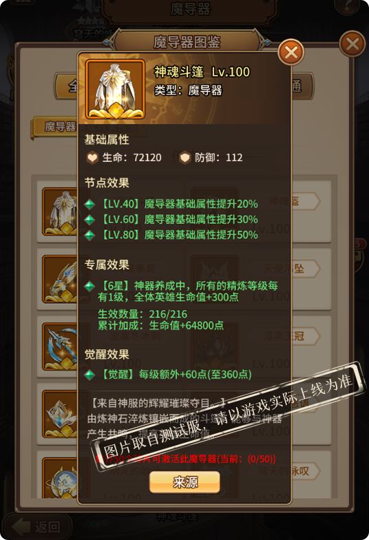 【神魂斗篷】:神器精炼等级越高,则全体英雄生命值提升值越高;