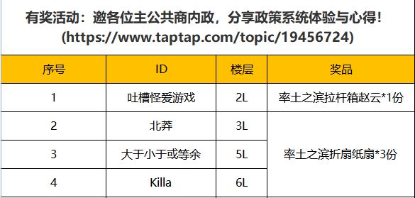2.有奖活动:邀各位主公共商内政,分享政策系统体验与心得!