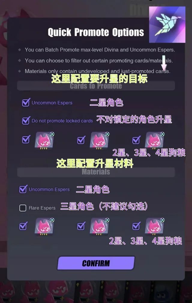 自动升星的配置界面: