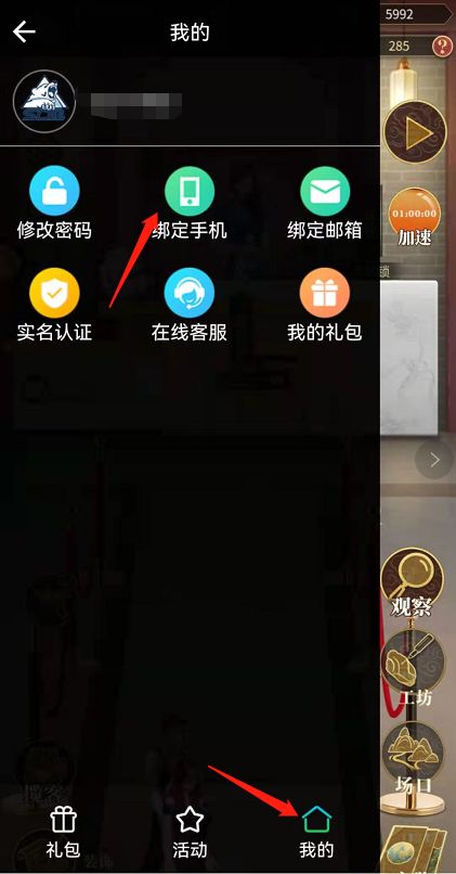 1、为便于联系获奖玩家,请参与本活动的玩家账号登录后,绑定手机以便联系获奖玩家登记收货信息;绑定方式如下图: