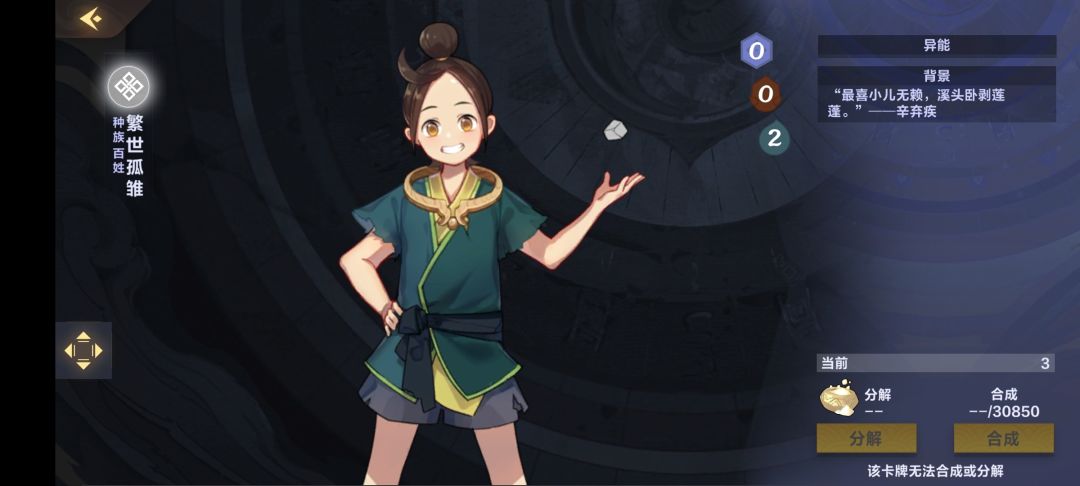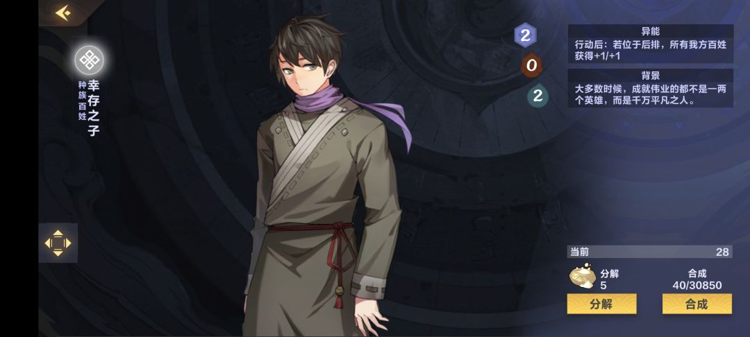 这里注意幸存之子,很好用,下场放后排行动后直接就能全体百姓+1+1,比公子强的地方在于,只要能站住场,每回合都能给全体百姓+1+1。