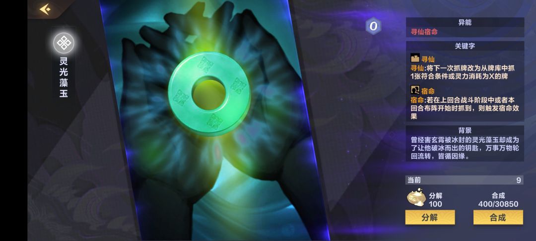 灵光藻玉这卡目前有bug,会寻仙到自己,因为它带宿命词条,所以为了避免这种情况,我只放了一张,明天bug修复了可以考虑多放一张。