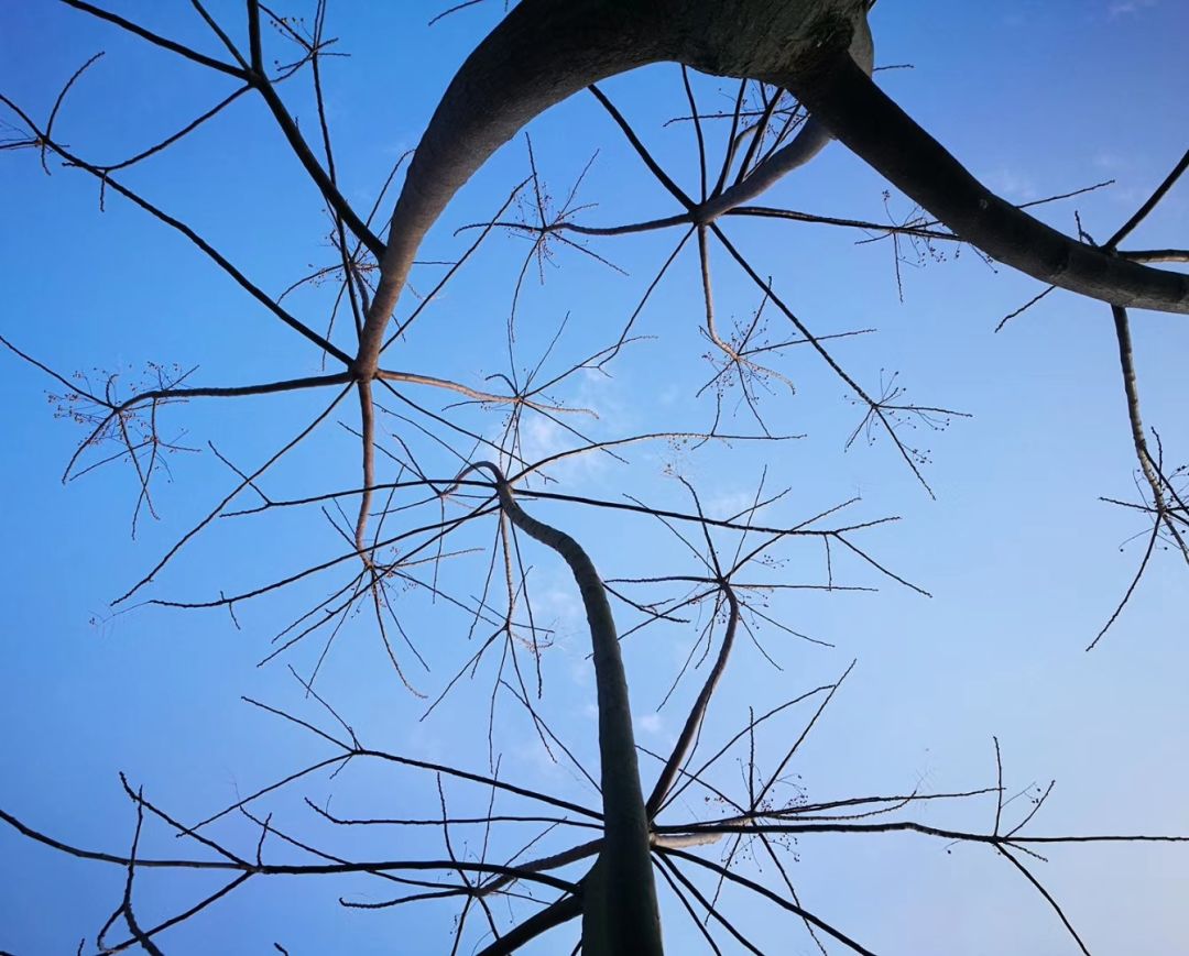 又过了几天,绿纱处于盛花期的时候,我又过来尽情地欣赏了一番。美丽的紫白色花朵吸引了过往的学生的目光,我看到有女生结伴爬上来看花,小声地讨论着这是什么树,还有男生拿着手机在调整角度给花拍照。旁边的我顿时莫名骄傲起来:这可是绿纱为我开的花!我是绿纱的人类朋友!你们只是顺带的!
