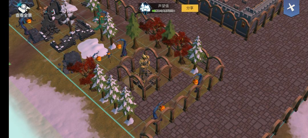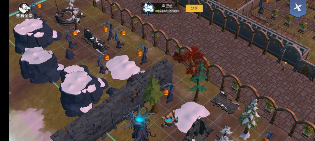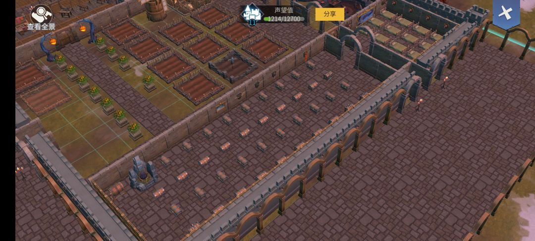 更新后打算种20块田,发现土地不够了,决定改造一下家园。改善扩大一下佣兵的住宿条件,大宿舍改成单人间,将原本下方的城墙向外扩张。在左侧围墙外创造一个遗迹森林公园,废墟不清理,留点废墟更有冒险的感觉,用树木环绕包围,左侧围墙外的砖块拆除,全部用树林代替。大工程,每天购买有上限,可能需要好久,慢慢来