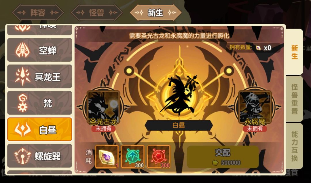 另外最主要的原因,是为后期的【国家队】做准备,相信新手玩家基本都听过这个阵容,所谓的“国家队”,便是“混沌”进阶的最终兵器+龙宝进阶的圣光龙+前期所有人都会获得的三个新生,冥龙王,梵,和白昼,这5个,便是标准的国家队阵容。