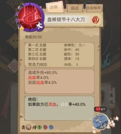 武艺中的武器武学除了基础攻击力、命中、破防、透体数值,还包含四式(武功四式为出招顺序,周而复始,不会因为切换武功而重置),伤害类型以及冷却回合数。需要注意的是3品以上的武功可以解锁绝招。底部会显示该武学在武艺一栏消耗的槽位数。