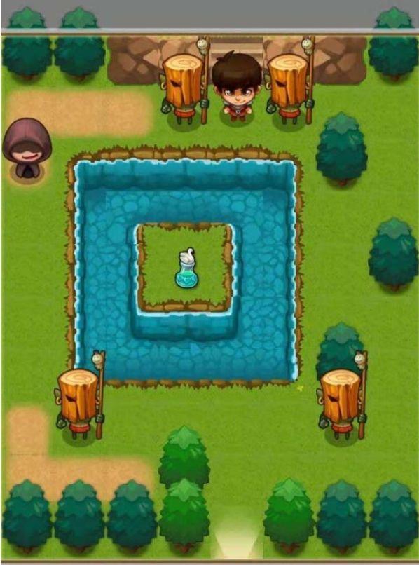 勇者来到森林F49看到一个银色的宝箱打开发发现了特殊的鞋子(可以在湖面上行走的鞋子,很神奇。)拿到特殊的鞋子回到森林F43拿到魔法液(喝了之后将能够变成天鹅)