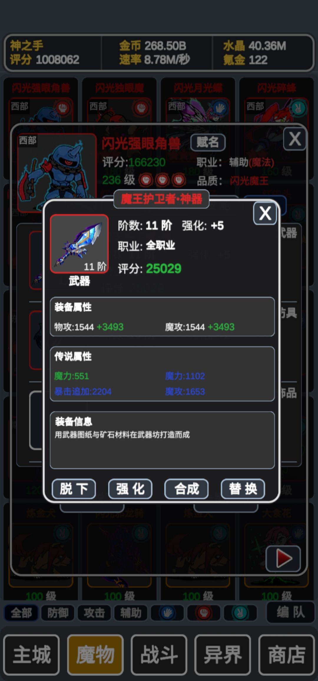 期待下一测六星能弄好,升六浪费一个三星红魔物本体啊,不浪费都能弄个四星,评分还能再涨一波😁。