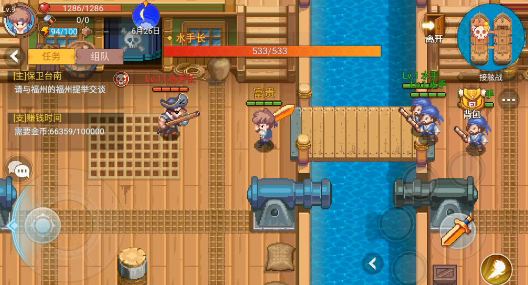 1、增加了比较有意思的开场动画,故事先从某国统治者想要入侵中国,主角带领的水手队临危不乱,英勇击退了海上入侵者,但不幸被大章鱼击落船只,醒来了主角已经在监狱中...由此开启游戏内容。