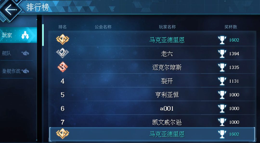 之后根据每位掠夺者拥有的奖杯数来进行排名。