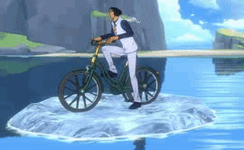 当自行车在海面上静止时,脚下的浮冰也会有所变化,青雉的动作也变为单脚撑地停稳车子,可以说是细节拉满!在角色界面我们可以更加直观地感受到自行车的细节~