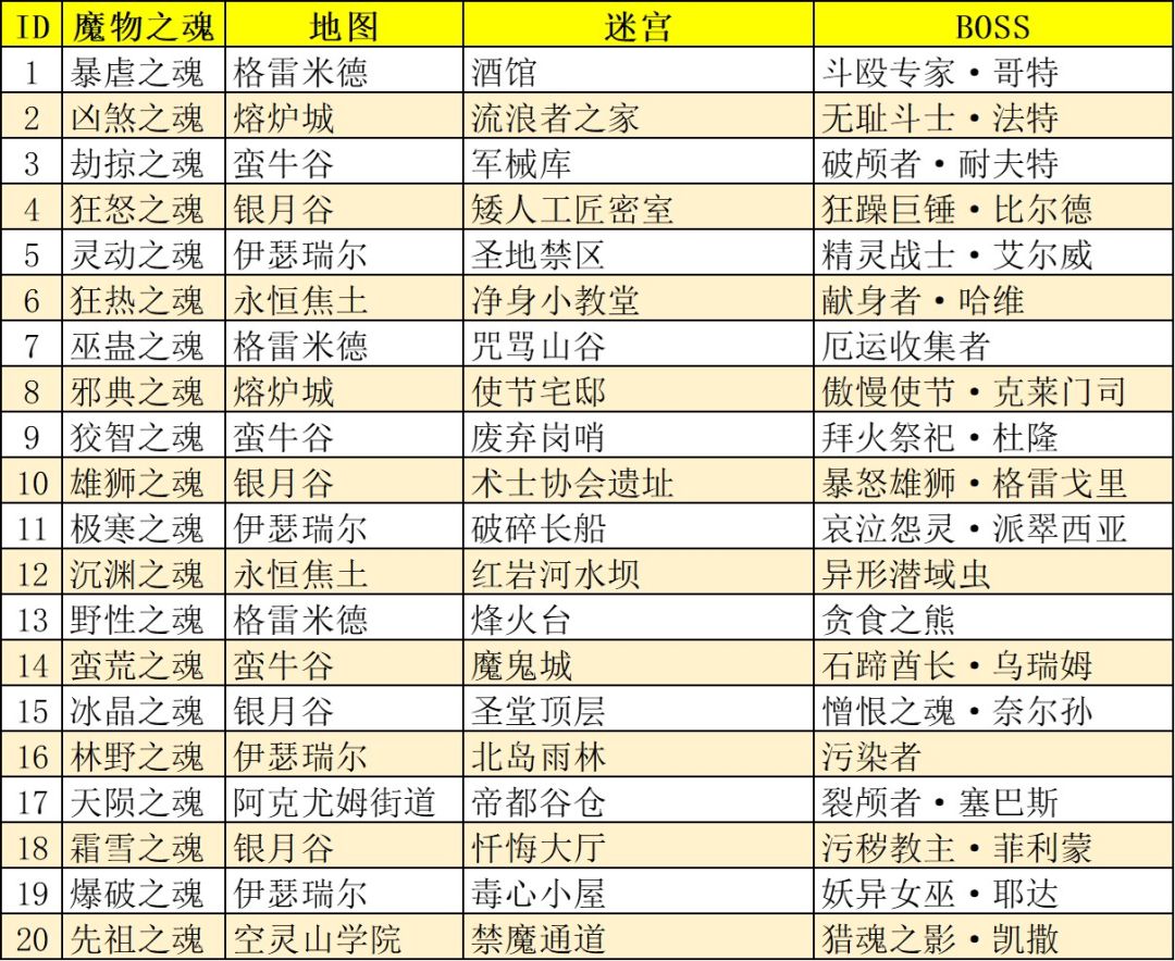 (11.20更新:收到各位招魂师的反馈,看门狗又再加急去到游戏内验证了一波,并补充了迷宫对应的地图,现在已将正确掉落信息更新在下图啦~如有问题欢迎招魂师们再积极反馈哟!