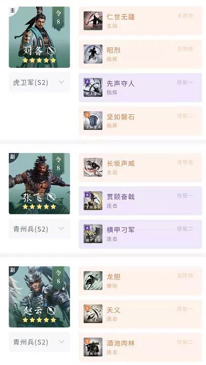 在先声夺人的加成下,张飞与赵云的突破能力非常惊人,刘备主将也能凭借闪避规避许多技能,但该阵容的续航较低,需要利用站位优势来速战速决。