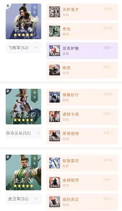 正因为主动队伍较多,郭嘉这名拥有高频沉默能力的武将,成为了PVP中的一大亮点,配合诸葛亮与法正的抵挡机制,保证控制与坦度的同时还拥有不错的输出能力,法正替换曹仁后可立马变身最强驻守队,也可上阵贾诩和郭嘉走魏智路线。