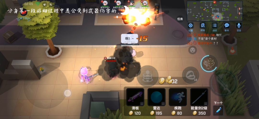炮:分身和本体的双重炮击可以大幅提高命中;缈可以分身卡位,具体就是通过影分身去限制小偷的移动轨迹。(无论缈拿的什么武器,大部分小偷看到缈开影分身都会本能躲避)还有一点虽然不重要,但还是想提一下,有时会出现本体和分身的攻击打在同一个人身上一发倒的情况,这是因为本体和分身造成伤害的时间有细微差异,这样小偷就相当于受了两次攻击(触发概率极低,10局1次的那种,还是局局都有团战的情况下),有时卡边缘也能一炮秒,这种属于技巧,只要能卡好点就能触发,只要你能保证命中范围缩小到一个身位都能中就行(本来有个素材找不到了,之后补)