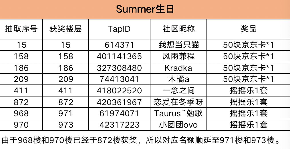 TapTap+Summer生日+获奖昵称