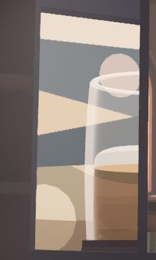 人无法想象一个没见过的东西,所以当我们想象一个从来没去过的人家时,脑海中浮现的是自己的家。主角知道肯定有人的家在战争中摧毁了,不自觉地用自己的新家去想象这一场景。显然他不太在乎这个新家,甚至还有点希望摧毁这个新家(说不定更希望自己直接死在战场上),不然为什么不用小岛上的旧家去想象呢?而且我们还看到,在这个疑似地下室木板上面有一个倒地的大盆栽,而我前面也说了,大盆栽就是主角的化身,所以这意思就是主角觉得自己的灵魂已经死亡了,就死在这个倒霉的地下室前。那这个地下室里有什么呢?我们往地下室里一看,哇不得了,这里居然有成箱的罐装酒,而且倒下的垃圾桶里还有酒罐。看看这些箱子的空格子就知道,主角已经喝了巨多酒了,在这个地下室里过得浑浑噩噩有如烂泥一般。可能这不是真正的地下室,这些场景就放在明面上,这地下室只是主角试图深藏记忆的具现化,不过这些记忆还是被玩家强行撬开了。