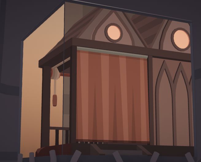 内心的声音告诉他,他必须忏悔,他必须亲手拉开告解室的门帘。