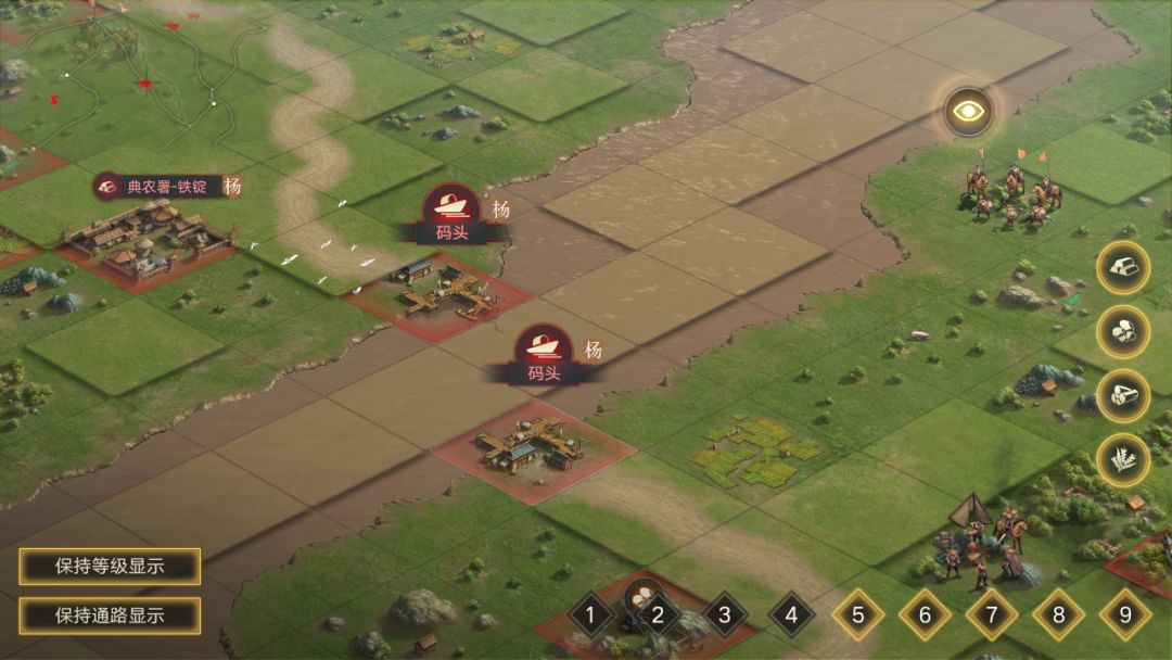 ●1至4级土地默认通行,但无法进行进攻、侦察,练兵、屯田、拓路,修建操作,已处于修建中的状态不受影响.