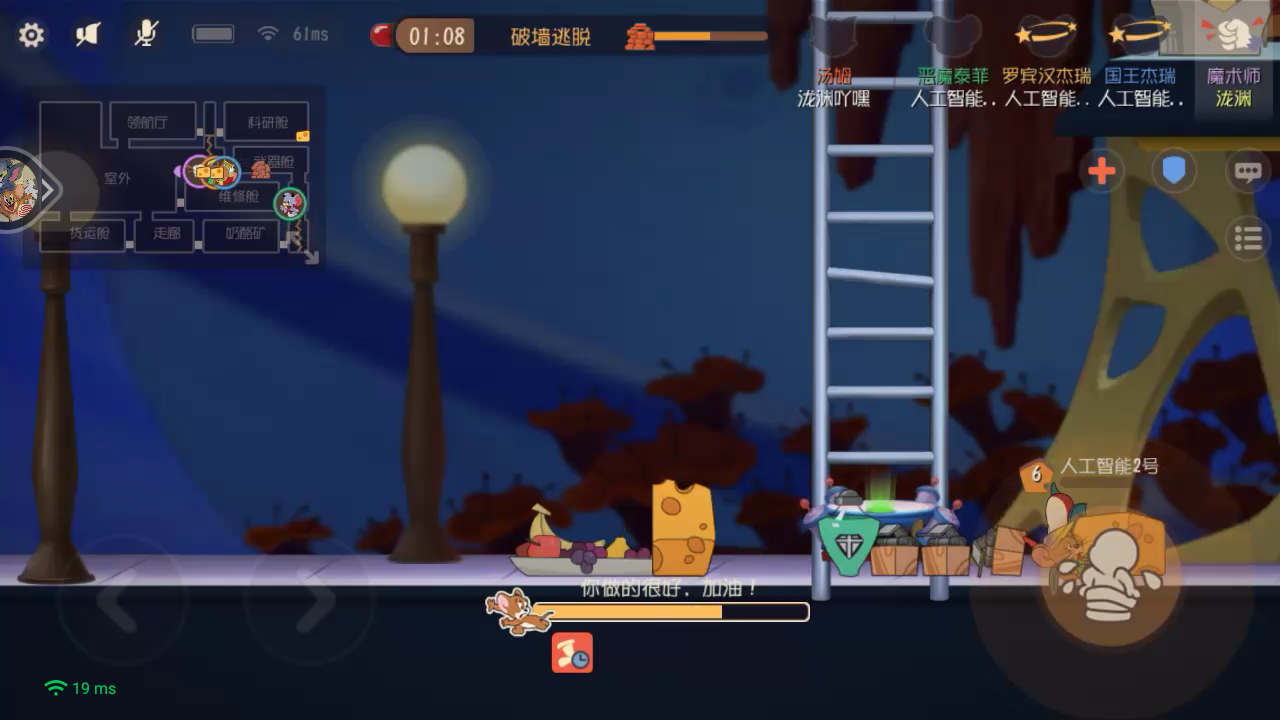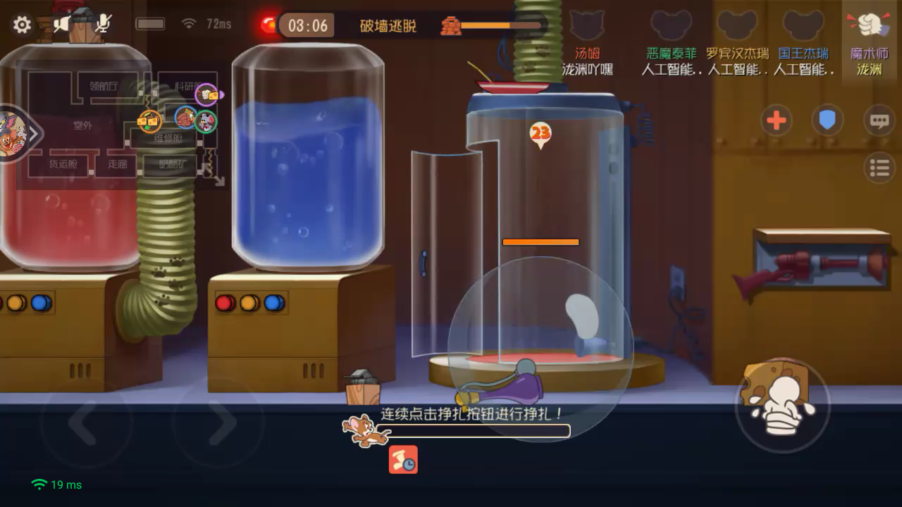 本视角为猫用泡泡机后抓住老鼠并使用科研仓隐身药水的视角