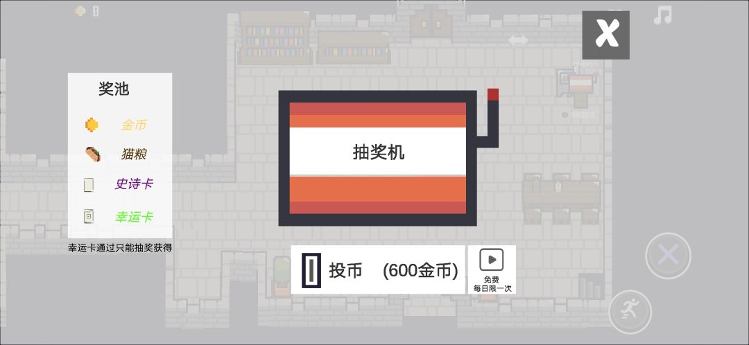 现在你能获取到猫粮(关卡、抽奖机掉落),然后喂养猫咪,当你喂养成功他就能跟你一起去战斗啦