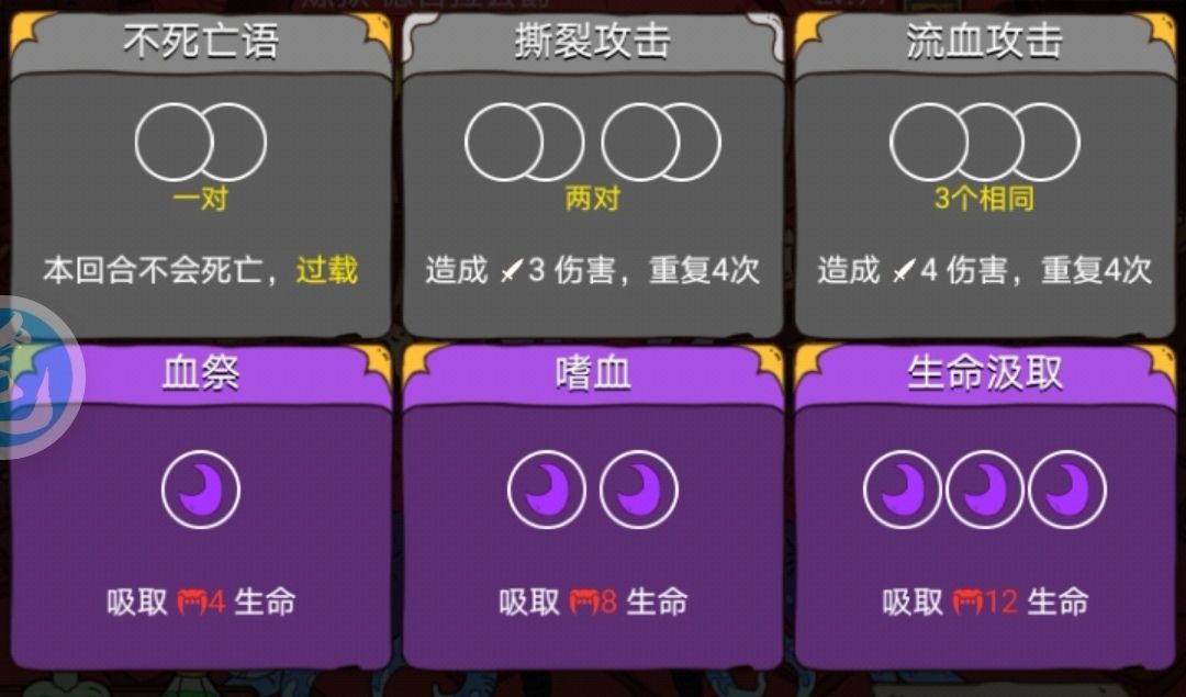 2.防御:根据其装备/卡牌特性,有免死/➕护盾/不死/闪避/重生/回复的能力
