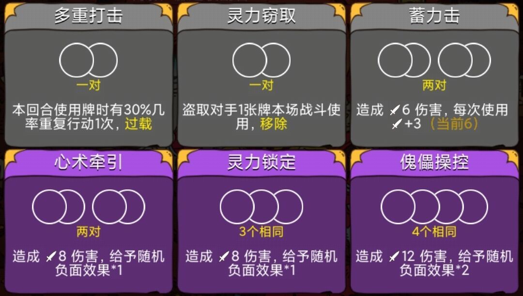 4控制:卡牌或者装备的combo会对玩家的卡组出牌造成限制/削弱