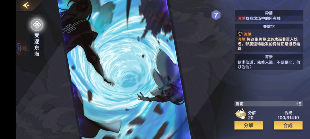 但是我们是上限阴,东海对我们的威胁程度可远没有对复活阴和复活木的威胁大,就算我们碰到的对手带了东海,甚至也撑到后期用出了这张卡,我们依然可以继续战斗。我有几把对上复活木和阴还有弃牌火,当我放出东海,对面都是直接投降了😂😂基于此,我塞了一张,下了一张静谧安歇,卡位实在太紧张了,忍痛😭