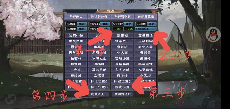 点击右侧洞六,选择想去的一个。点出发(跑路),或者传送(洞耗传送石)