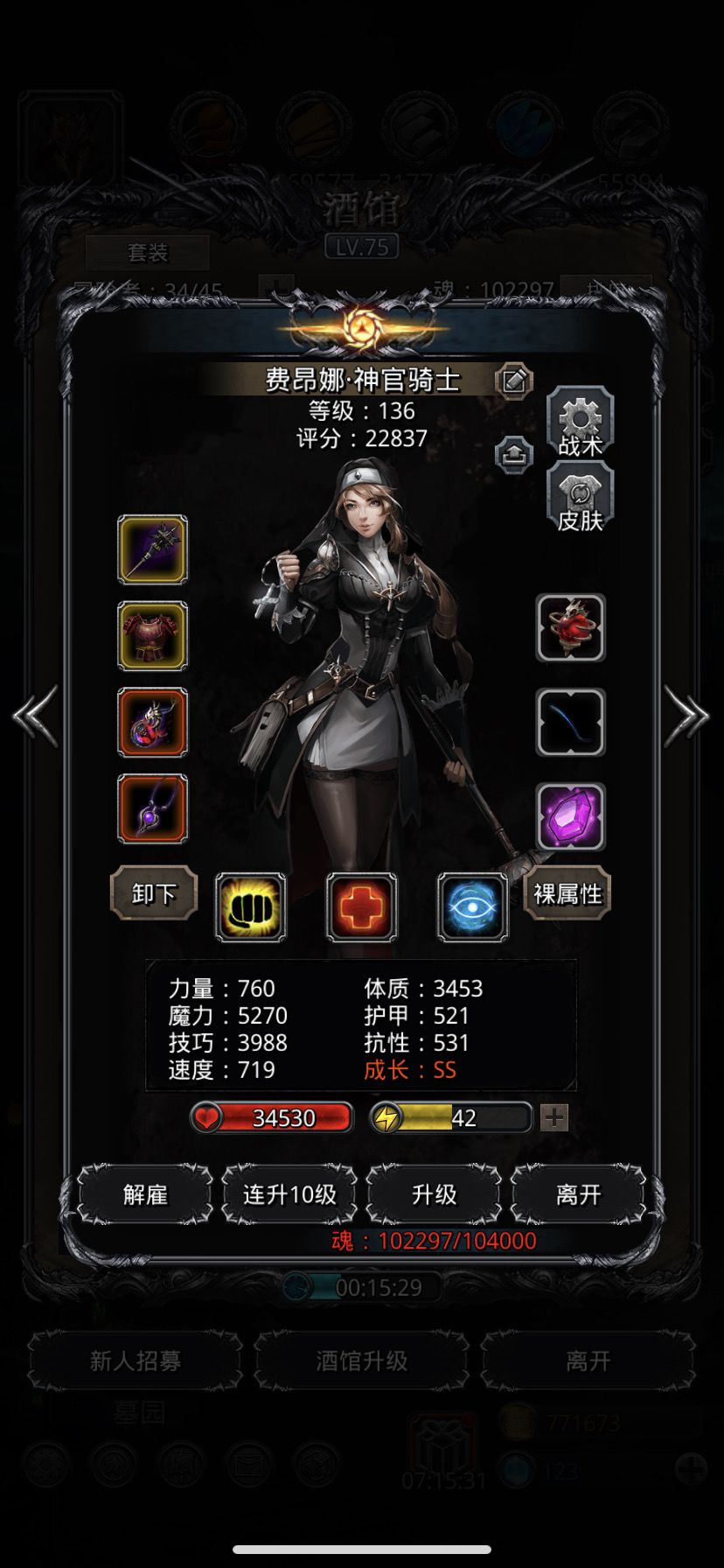 配装方面巫医巫医秒回尽量高,越高越好,奶骑不用太追求技巧,我用的8.6回复2.9魔2.6技的战利品➕星国,带星符文甲和带星骑士盾都是恶魔剑士符文(体技)做的